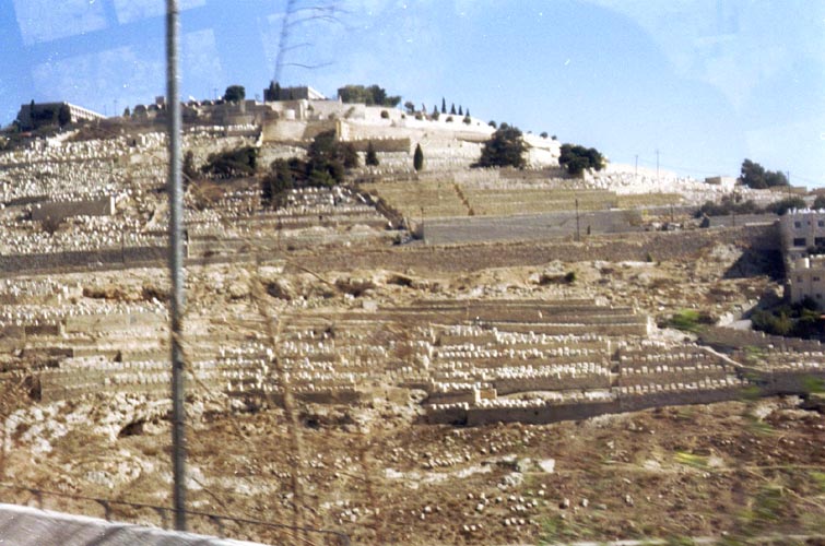 Вид по дороге с Масличной горы к Старому городу. Еврейское кладбище.