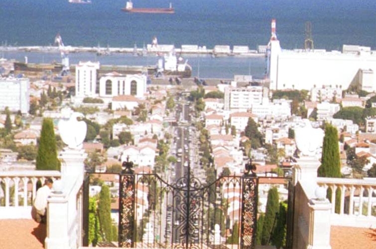 Вид на город и Средиземное море с террасы храма религии Бохаи.