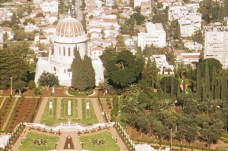 Вид сверху на храм Бохаи и его персидский сад.