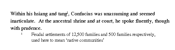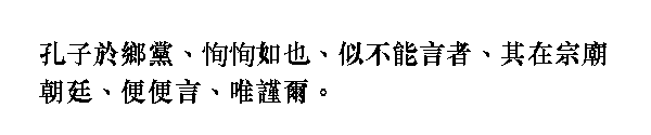 В родном дане Кун-цзы не был многословным, хотя и казался простодушным, а в главном храме [государя] и при дворе был красноречив, хотя и краток.