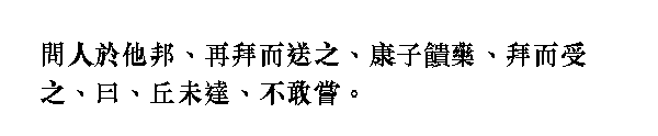 Когда Канцзы преподнес лекарство, [Учитель] с поклоном принял его, сказав: "Я еще не разобрался, что это за лекарство, поэтому не смею опробовать."