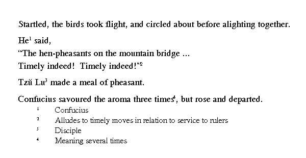 [Кун-цзы] сказал: "Эти фазаны знают свое время, знают свое время!"