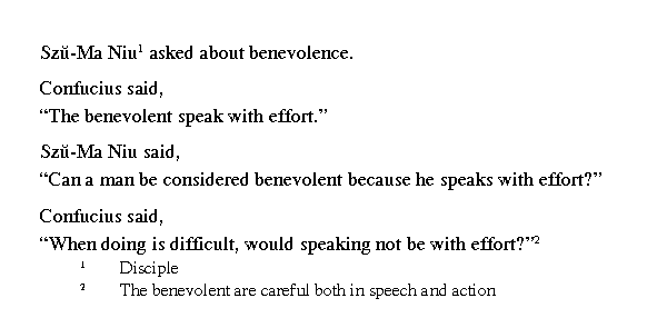 Сыма Ню ≈ ученик Конфуция, был известен скоропалительностью своих суждений.