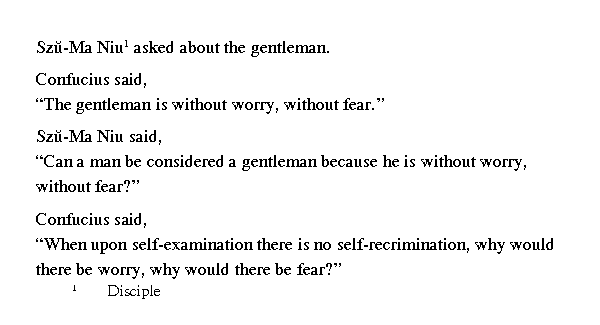 ≈ Не беспокоиться и не испытывать страха - и этого достаточно, называться благородным мужем?