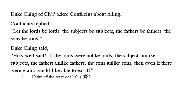 ≈ Правитель должен быть правителем, чиновник - чиновником, отец - отцом, сын - сыном.