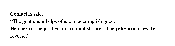 ≈ Благородный муж помогает людям претворять то хорошее, что заложено в них, и не помогает претворять то плохое, что заложено в них. Маленький человек поступает наоборот.