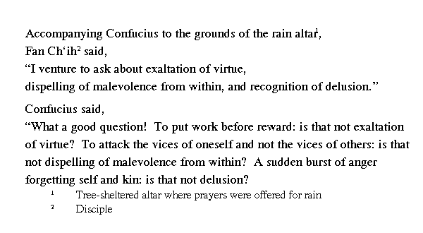 Фань Чи, сопровождая Учителя на прогулке у алтаря дождя, сказал: