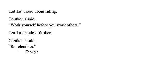 [Цзы Лу] попросил пояснить, что значит [быть примером], и Учитель сказал: