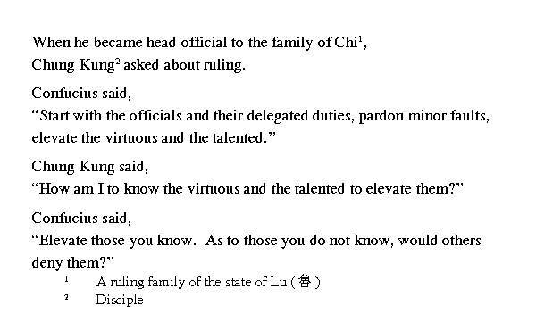 Чжун Гун, став управляющим в [семье] Цзи, спросил о сущности правления.