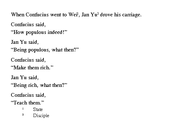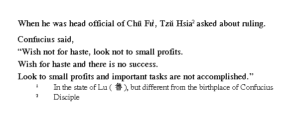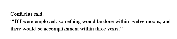 Учитель сказал: "Если бы меня привлекли [к управлению государством], я в течение года навел бы в нем порядок, а через три года добился бы успехов".