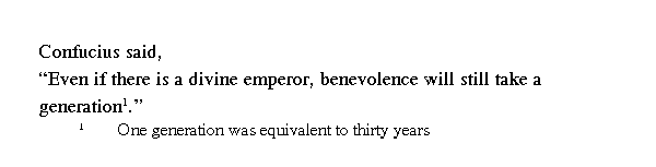 ≈ Если окажется [в государстве] истинный правитель, то всего лишь через поколение воцарится человеколюбие.