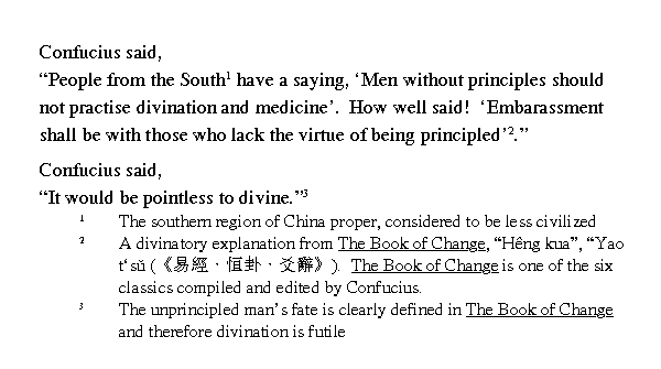 ╚Не будешь постоянным┘╩ - Конфуций приводит здесь пояснение к 32-й гексаграмме ╚И цзина╩ (╚Книги перемен╩) Хэн (Постоянство). Перевод пояснения цит. по [Щуцкий, 1997, с. 263].