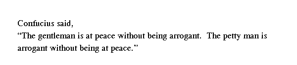 ≈ Благородный муж держится ровно и с достоинством, но без высокомерия. Маленький человек высокомерен и не держится ровно и с достоинством.