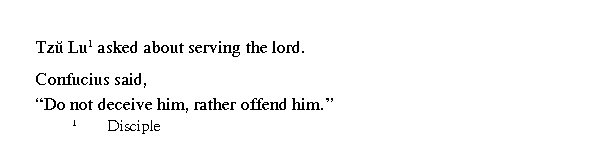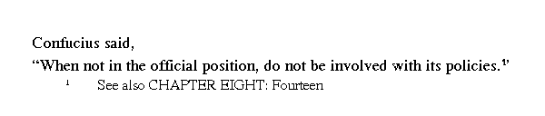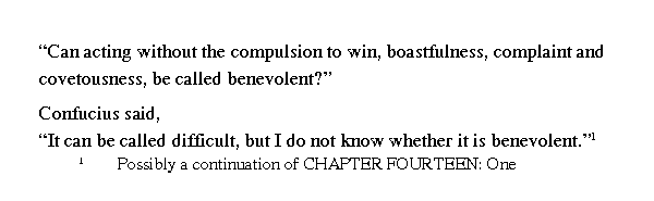 1 Учитель неоднократно напоминал ученикам о различиях между ╚словом╩ и ╚делом╩ (см. ╚Лунь юй╩, 1,14; II, 13; IV, 22; XII, 3; XIV, 27) [Хуан].