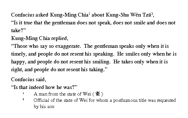 1 Хуан Цичун предлагает следующую трактовку: ╚Zi-gong said, "This is the Master's self-portrayal"╩.