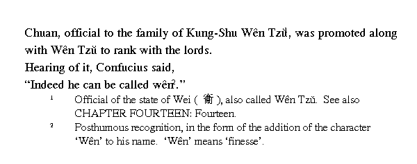 1 Гунмин Цзя служил при дворе аристократа Гуншу Вэньцзы. Гуншу Вэньцзы, он же Гунсунь Ба, - внук Сянь-гуна, правившего царством Вэй в 576≈559 гг. до н.э. Гунсунь Ба, будучи сановником в царстве Вэй, прославился своим благоразумием. Если он и принимал какие-либо дары, то только ╚по справедливости╩, не переходя разумный предел. Именно поэтому современники нарекли его именем Вэнь - ╚Культурный╩ [Хуан].