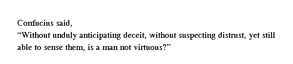 ≈ Не предполагать обмана и не подозревать в бесчестии, но сразу распознать такое, - разве не в этом мудрость?