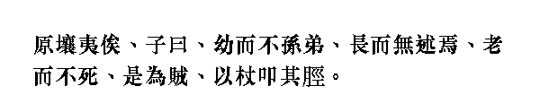 ≈ В детстве ты не почитал старших, повзрослев, не приобрел известность, состарился, а все не унимаешься, ведешь себя, как разбойник.