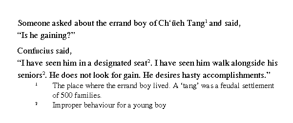 Когда мальчик из дана Цюэ передал послание, некто спросил о нем: