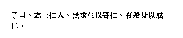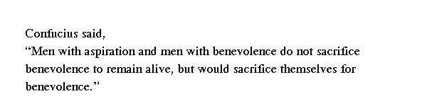 ≈ Целеустремленный ши-книжник и обладающий человеколюбием не пытаются сохранить жизнь ценой [утери] человеколюбия, более того, они жертвуют собой ради достижения человеколюбия.