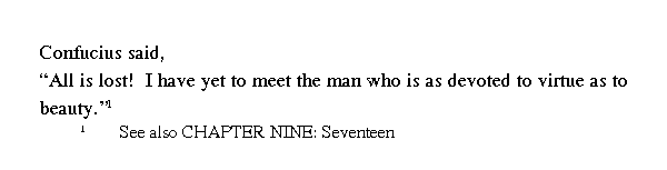 1 Ян Боцзюнь отмечает, что данное суждение относится к поведению вэйского царя Лин-гуна, во всем потакавшего своей юной жене - красавице Наньцзы.