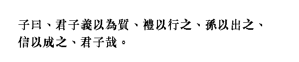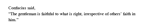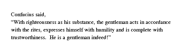 Учитель сказал: "Благородный муж ко всему подходит в соответствии с долгом; совершает поступки, основываясь на ритуале, в словах скромен, в поступках правдив. Именно таков благородный муж".