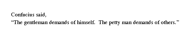 ≈ Благородный муж требователен к себе, маленький человек требователен к другим.