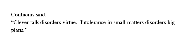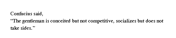 Учитель сказал: "Благородный муж держит себя строго, но не устраивает споров с людьми, он умеет быть в согласии со всеми, но не вступает ни с кем в сговор".