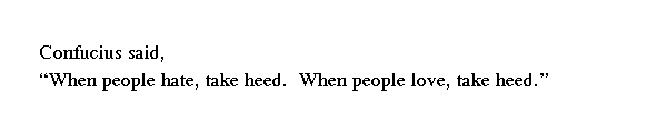 Учитель сказал: "Когда люди ненавидят кого-либо, надо непременно узнать почему. Когда люди любят кого-либо, надо непременно узнать почему".