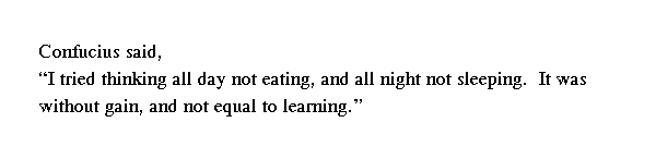 Учитель сказал: "Я часто целые дни не ем и целые ночи не сплю, все думаю. Но от этого нет пользы. Лучше учиться!"