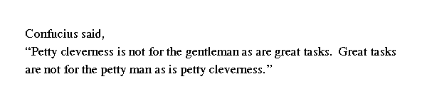≈ Благородный муж может не разбираться в малом, но способен взять на себя ответственность за большое; маленький человек не способен взять на себя ответственность за большое, но может разобраться в малом.