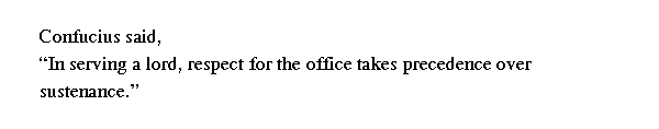 ≈ Когда ты на службе у правителя, думай прежде о своем деле, а потом уже о своем жалованье.