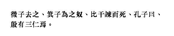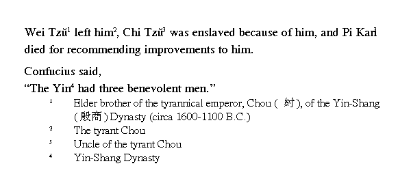 Вэй-цзы покинул его, Цзи-цзы стал его рабом, Бигань был казнен за увещания. Кун-цзы сказал: