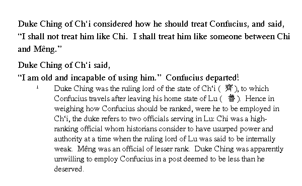 Циский царь Цзин-гун, раздумывая, по какому разряду принять Кун-цзы, сказал: