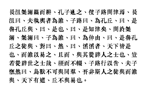 Чан Цзюй и Цзе Ни вместе пахали. Кун-цзы, проезжая мимо, послал Цзы Лу разузнать