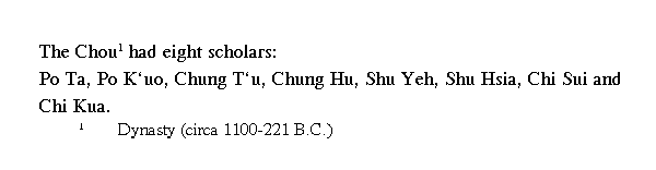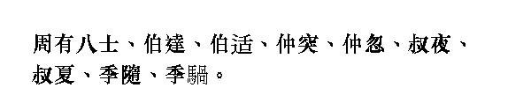 Во времена правления династии Чжоу было восемь известных ши-книжников: Бо Да, Бо Ко, Чжун Ту, Чжун Ху, Шу Е, Шу Ся, Цзи Суй и Цзи Гуа1.
