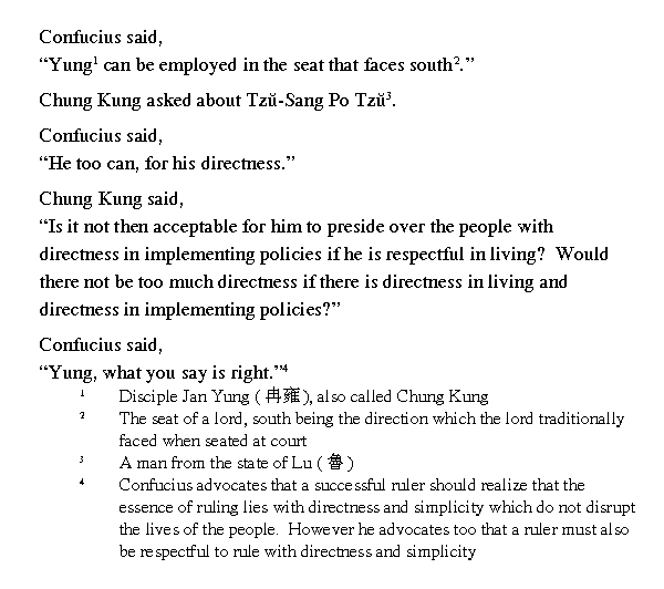 Учитель сказал: ╚Что касается Юна, то его можно посадить лицом к югу.╩