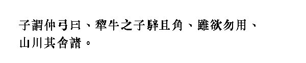 Учитель сказал о Чжун Гуне: ╚Если тяглового бычка, пусть даже рыжего и с [ровными] рогами, люди не захотят использовать для жертвоприношения, разве духи гор и рек погнушаются [принять] его?╩