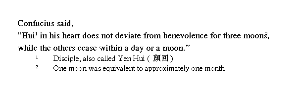 Учитель сказал: ╚Хуэй мог по три месяца оставаться человеколюбивым, тогда как других хватает на день или месяц.╩