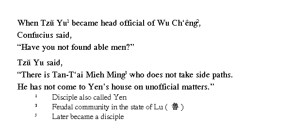 Цзы Ю ответил: ╚Есть там некто Даньтай Мемин. [Он] никогда не ходит по окольной