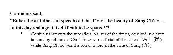 Учитель сказал: ╚Без красноречия Чжу То, с одной лишь красотой сунского Чжао трудно в наш век избежать беды╩.
