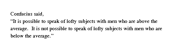 Учитель сказал: "С теми, кто выше посредственности, можно говорить о возвышенном; с теми, кто ниже посредственности, нельзя говорить о возвышенном".