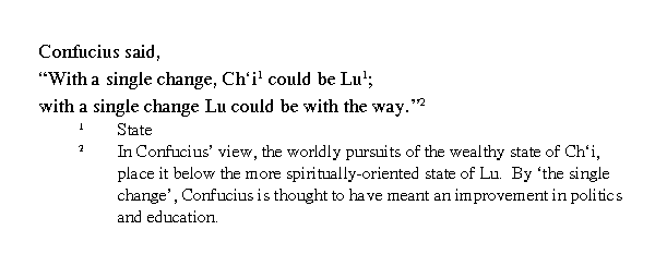 Учитель сказал: "Если в Ци произойдут перемены, то Ци может сравняться с Лу. Если в Лу произойдут перемены, то Лу достигнет вершин морального правления".
