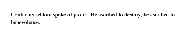 Учитель редко говорил о ли-выгоде, о мин-судьбе, о жэнь-человеколюбии.