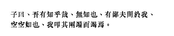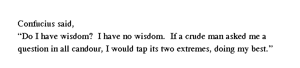 Учитель сказал: "Обладаю ли я знаниями? Нет, но когда низкий человек спросит меня [о чем-либо], то, [даже если я] не буду ничего знать, я смогу рассмотреть этот вопрос с двух сторон и обо всем рассказать [ему]".