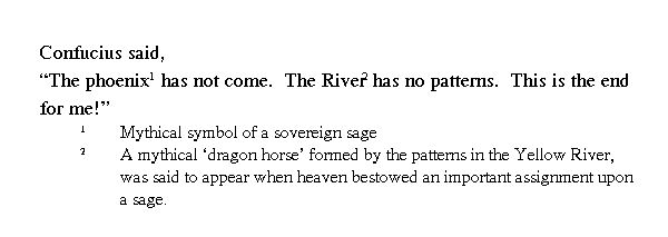Учитель сказал: "Феникс не прилетает, лошадь-дракон с рисунком на спине из реки не появляется, боюсь, что все окончено".