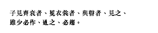 Когда учитель видел людей в траурных одеждах или в парадных шапках и платьях или слепых, то, хотя они были и моложе его, он обязательно вставал. Если же шел мимо них, то обязательно спешил.