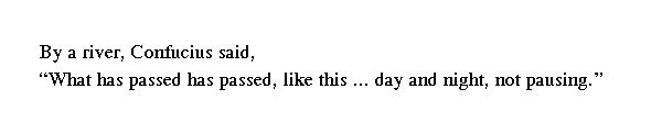 Стоя на берегу реки, Учитель сказал: "Все течет так же, [как вода]. Время бежит не останавливаясь".