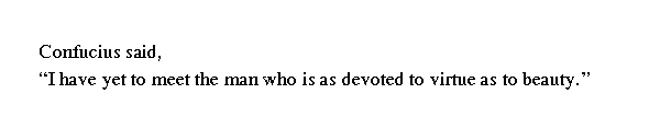 Учитель сказал: "Я не встречал еще человека, который любил бы добродетель так же, как красоту".