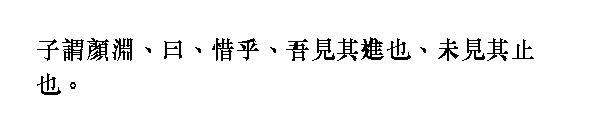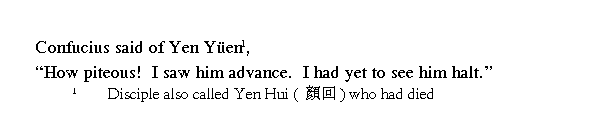 Говоря о Янь Юане, Учитель сказал: "Как мне жаль его! Я видел, как он продвигался вперед, и никогда не видел его стоящим на месте".